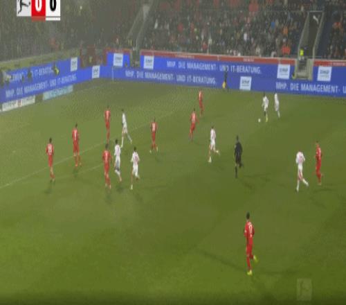 第20分鐘,邁因卡禁區(qū)低射打門,皮球被門將抱住